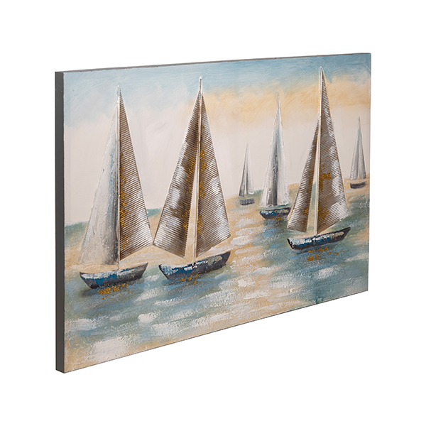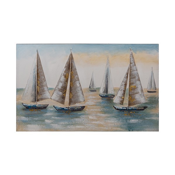 ΠΙΝΑΚΑΣ ΚΑΜΒΑΣ ΚΑΡΑΒΙΑ ΓΑΛΑΖΙΟ-ΑΣΠΡΟ-ΧΡΥΣΟ 100x60cm