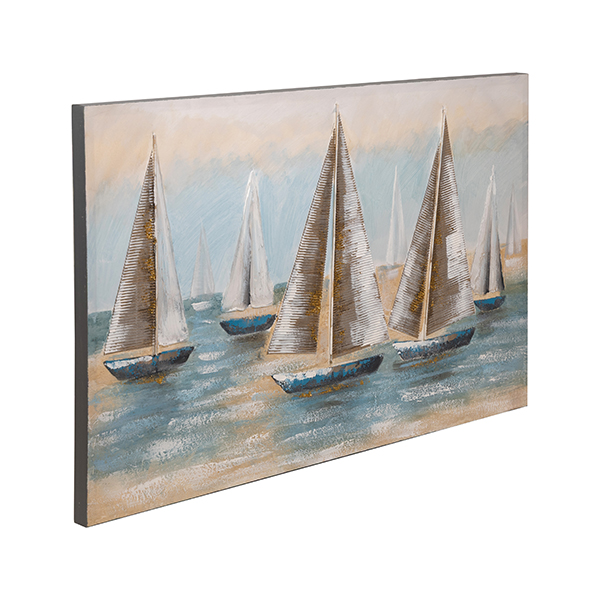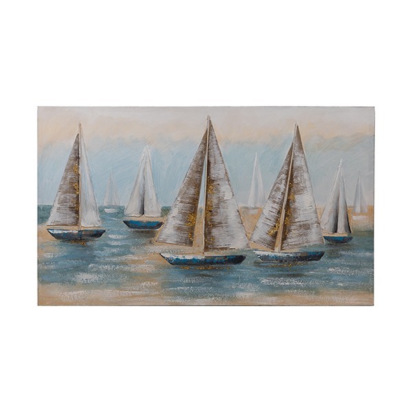 ΠΙΝΑΚΑΣ ΚΑΜΒΑΣ ΚΑΡΑΒΙΑ ΓΑΛΑΖΙΟ-ΑΣΠΡΟ-ΧΡΥΣΟ 100x60cm